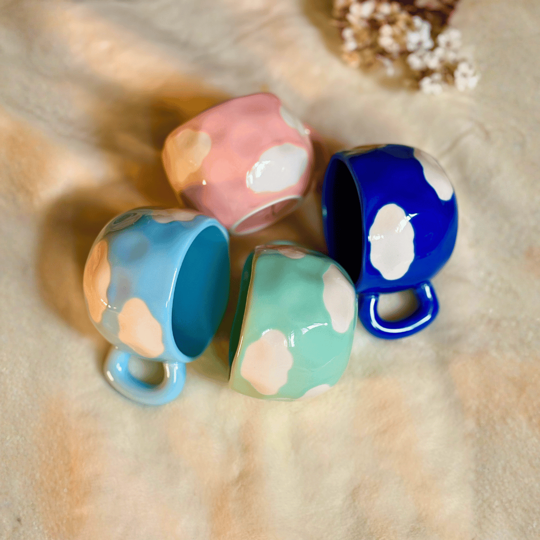 The Cloudy Mood Mug features a hand-pinched irregular shape with a soft cloud design that’s trending everywhere right now.